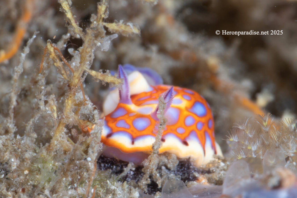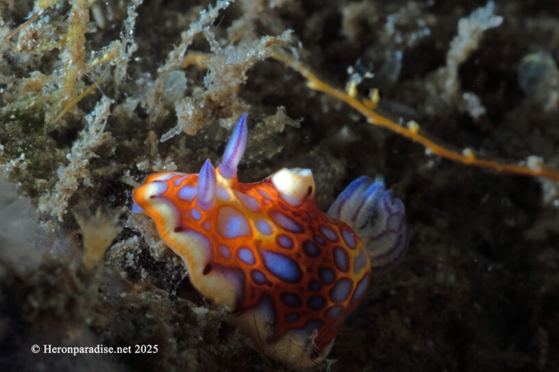 All the usual subjects showed up to greet us and even the Nudibranchs are still around. Interestingly I learned that this is the time of year when the Nudibranchs show up in numbers at the bridge to mate and the last two trips have been filled with these interesting and beautiful little creatures. The picture above is a Harlequin Sea Goddess. My first ever sighting other than books. I think we found about 8 of them and they’re only about the half the size of your baby fingernail. There’s no telling how long they’ll be around, but I hope to get a chance to find more in a few weeks. Also new to me this trip were the abundance of Dartfish(Below is a Blue Dartfish). I’ve seen them from time to time, but have never been able to get close enough to get a picture. This trip they were out in numbers and even let me get close to them before diving into a hole when they get spooked.