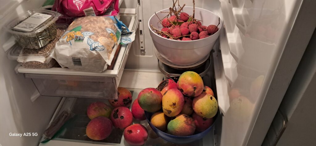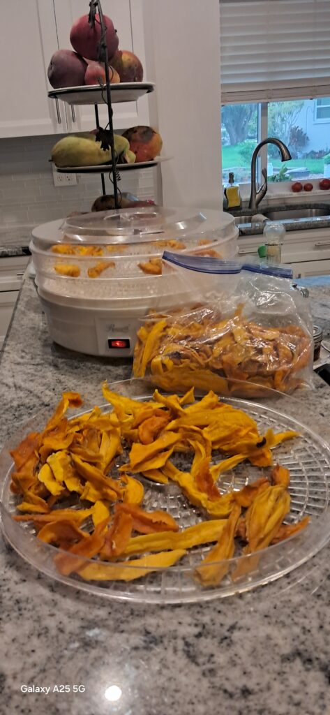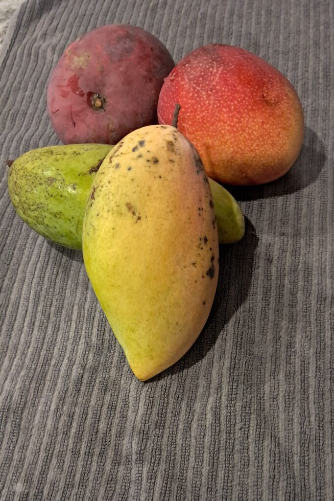 That still leaves us with some wonderful fruit crops to harvest in the summer and fall, although because of the two hurricanes we had last fall our trees are still recuperating and the harvests will be much smaller. Right now papayas, mangoes, peaches, Caribbean plums and lychees are in season and thanks to friends we’ll be able to enjoy all of them.